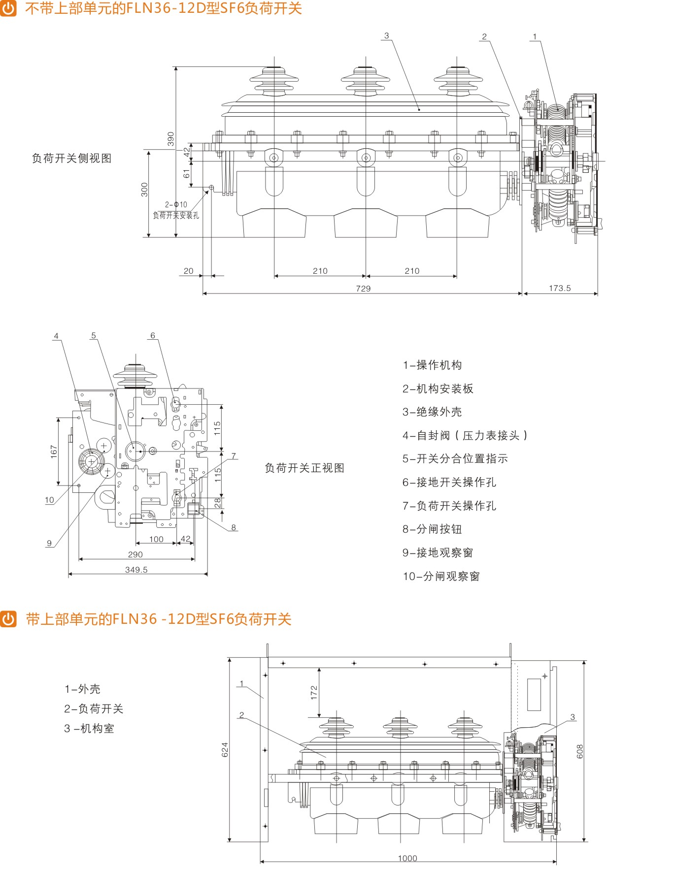 FLN36-12D系列SF6負(fù)荷開(kāi)關(guān)是額定電壓為12KV的開(kāi)關(guān)設(shè)備,采用SF6氣體作為滅弧和絕緣介質(zhì),開(kāi)關(guān)內(nèi)部有合閘、分閘和接地三個(gè)工位,具有體積小,安裝使用方便和環(huán)境適應(yīng)性強(qiáng)等特點(diǎn)。