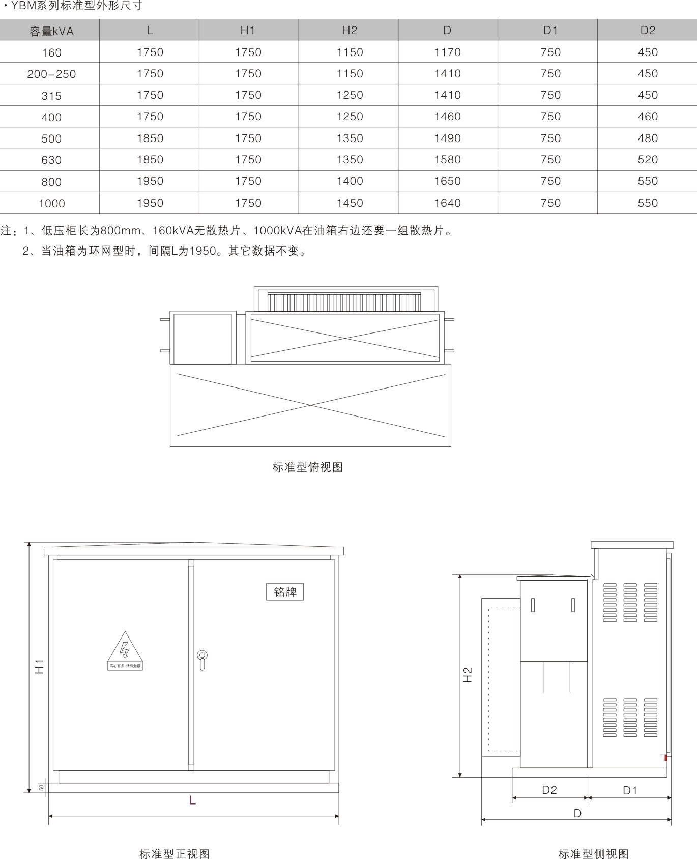該產(chǎn)品將高壓負荷開關(guān)、高壓熔斷器置于變壓器油中,具有變壓器器身共箱或分箱兩種結(jié)構(gòu)形式。油箱采用全密封結(jié)構(gòu),配有油溫表、油位表、壓力表、壓力釋放閥、放油閥等元件以監(jiān)測變壓器運行狀況。該產(chǎn)品分為環(huán)網(wǎng)型、終端型及雙電源型供電方式。為了使產(chǎn)品更適合于我國電網(wǎng)的實際要求,我公司又推出了插拔型熔斷器, 熔絲的熔斷不影響變壓器性能.根據(jù)低壓饋出要求的復雜程度,我公司YBM系列產(chǎn)品分為標準型、加強型和綜合型三種外殼形式,做到使用戶和設(shè)計單位在選型時更靈活、更經(jīng)濟。