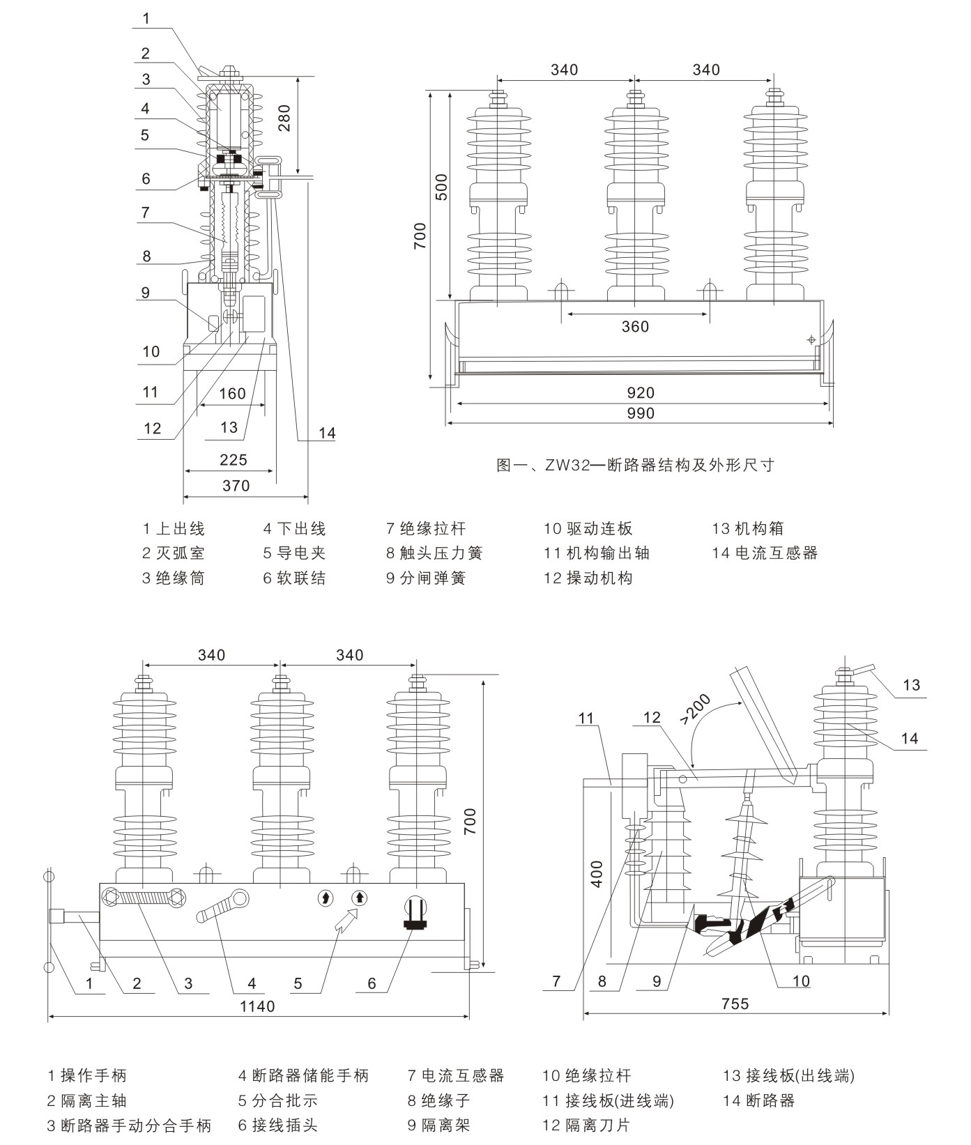 ZW32-12型戶外真空斷路器(以下簡稱斷路器)為額定電壓12kV,三相交流50Hz的戶外配電設(shè)備。主要用于開斷、關(guān)合電力系統(tǒng)中的負(fù)荷電流、過載電流及短路電流。適用于變電站及工礦企業(yè)配電系統(tǒng)中作保護(hù)和控制之用,及農(nóng)村電網(wǎng)頻繁操作的場所。