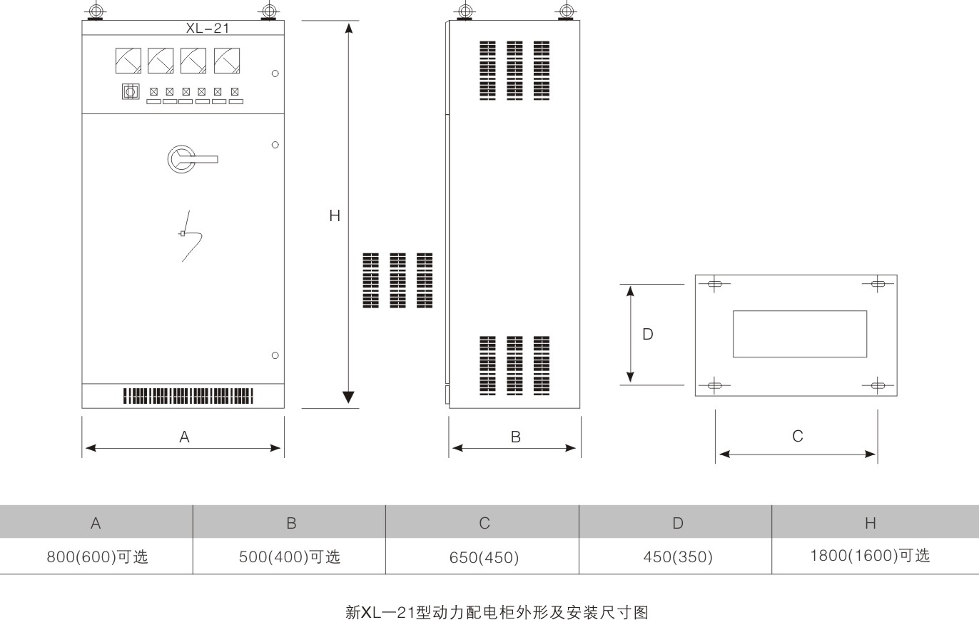 新型XL-21動力箱廣泛用于發(fā)電廠及工礦企業(yè)中,在三相交流500V以下三相三線、三相四線、三相五線等配電系統(tǒng)中作動力或照明配電之用,系戶內(nèi)靠墻安裝,屏前操作,屏前檢修;箱體為全封閉結(jié)構(gòu),由C型材或8MF型材拼裝而成。箱內(nèi)采用新型旋轉(zhuǎn)式負(fù)荷隔離開關(guān),可帶負(fù)荷操作,正面門上裝有電壓、電流指示儀表以及信號燈、按鈕、轉(zhuǎn)換開關(guān)等主令元件。本配電箱內(nèi)采用自行設(shè)計的新型組件,結(jié)構(gòu)緊湊,造型美觀大方,維護(hù)方便,多種接線方案可供用戶選擇,是替代老型XL-21動力箱的理想產(chǎn)品。